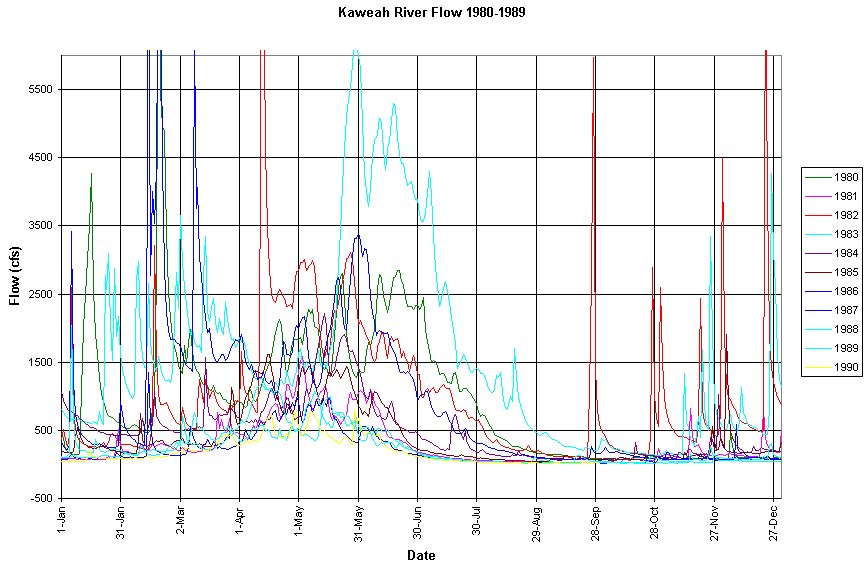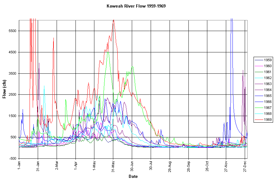 • Graph of Flow vs New Dinely Gauge Ht. (Updated often as new data is available)