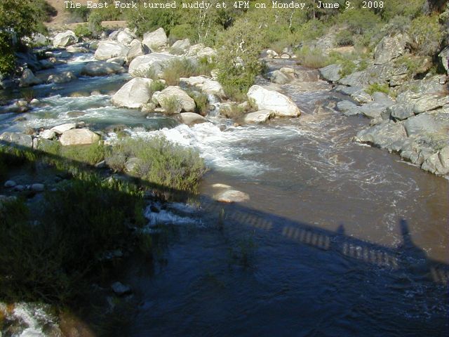 • 02-21-10 We have heard from Southern California Edison that their project to report the gauge data from their gauges on the East Fork and Hospital Rock to the internet will not be completed for the 2010 spring runoff. The delay is related to a bigger project where they are replacing a large amount of hardware with a newer system and they want to wait and make the reporting system part of the new hardware system. They have not forgotten us. The project is only delayed.
