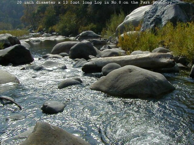 • 04-01-03 Alan and Mike ran the Park Boundary on 3-22-03. They report some good news! Portage No. 11 is no longer a portage. The boulder that blocked the bottom of the drop forcing the flow under the dangerous undercut boulder on the right is gone as a result of the Nov. 8, 2002 flood. The new rapid is a large sliding drop. The gauge on the Boundary read 4.90 ft. (est 225 cfs on the Boundary). Flow at Three Rivers was 650 cfs at the time and flow was reported as minimal for the upper Kaweah. The bottom left exit of Osterizer is reported to have changed also. The fang tooth rock at the bottom is gone.