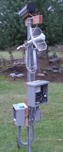 • 11-27-10 There is a new webcam coming soon to Kaweah Country. The new webcam will be located atop a mountain on private land. The view should be stunning. The entire system will be battery powered and solar charged. An embedded real time timer powers the system up only at specific intervals thus reducing the battery and solar requirements significantly. The system is fully working "in the lab" including the microwave link required to connect the remote site with the base station. Here you can see a photo of the Fully Operational Mockup of the Sierra Webcam less the solar panel which will be added at the time of installation. The planned installation date is January of 2011. This project was inspired by the work of Glenn Cunningham and his newest Mineral King webcam with a view of Farewell Gap. The Farewell Gap webcam is also fully battery/solar powered and also uses a radio data link to the base station.