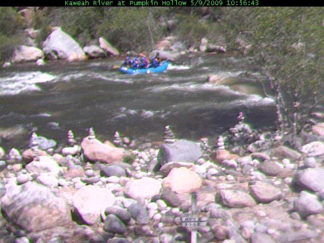 • 05-09-09 The Kaweah-Cam captured Two Kaweah Whitewater Adventures boats passing by the webcam Saturday morning with a load of commercial rafting customers. Kaweah-Cam 2009-05-09 10:55:36 and Kaweah-Cam 2009-05-09 10:56:43