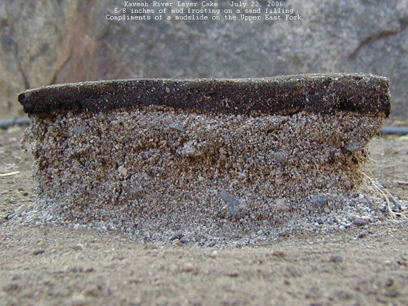 • 07-17-10 Strange thunder weather activity in the mountains the last three days ended with a mini flash flood Friday night that doubled the river flow in 4 hours. The Park Boundary jumped from 5.00 feet to 6.2 feet in three hours between 5PM and 8PM. The river started turning muddy at 9PM and by Saturday morning the flow had dropped but the Middle Fork was running brown/green and the East Fork was chocolate brown.