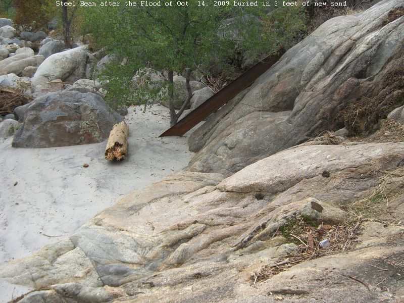• 10-25-09 After the flood of Oct 14th the previously removed Steel Channel Beam below The Chute became buried in 3 feet of fresh sand.