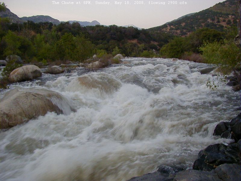 • 08-19-09 Good news to report regarding Kaweah gauging. Southern California Edison Company has acknowledged the need for public access to their real time flow data on the gauges at Hospital Rock, the Park Boundary and the East Fork. The project is in the works at Edison and may or may not be ready for the 2010 boating season. This is not without real cost to Edison as hardware, custom programming, and web site creation is involved. Sincere thanks go out to Edison for their expense, time and effort in this project.