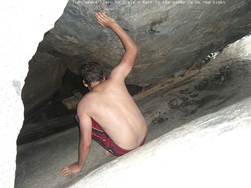 • 10-26-09 A 25 cfs low water exploration trip found the Upper Cave below Zero to Sixty goes way back upstream to the right below the drop and The Exit to the Cave is steep and can not be exited from water level without ropes even in the summer when the cave is dry and slime free.