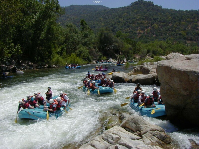 • 06-08-02 It was a Zoo on Saturday, 6-8-02, below Suicide Falls. This is why Tulare County now regulates commercial rafting on the Kaweah. It took 45 minutes to get all the rafts through Suicide. And the commercial outfitters are no where close to filling their allocated usage. While this is the scene on a typical Saturday, the river is nearly abandoned Monday through Thursday. Private boaters are conspicuously missing for a river of this quality. I wonder if there is any connection to the river access issue?
