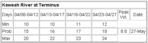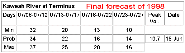 1998 Kaweah River Runoff Forecast History